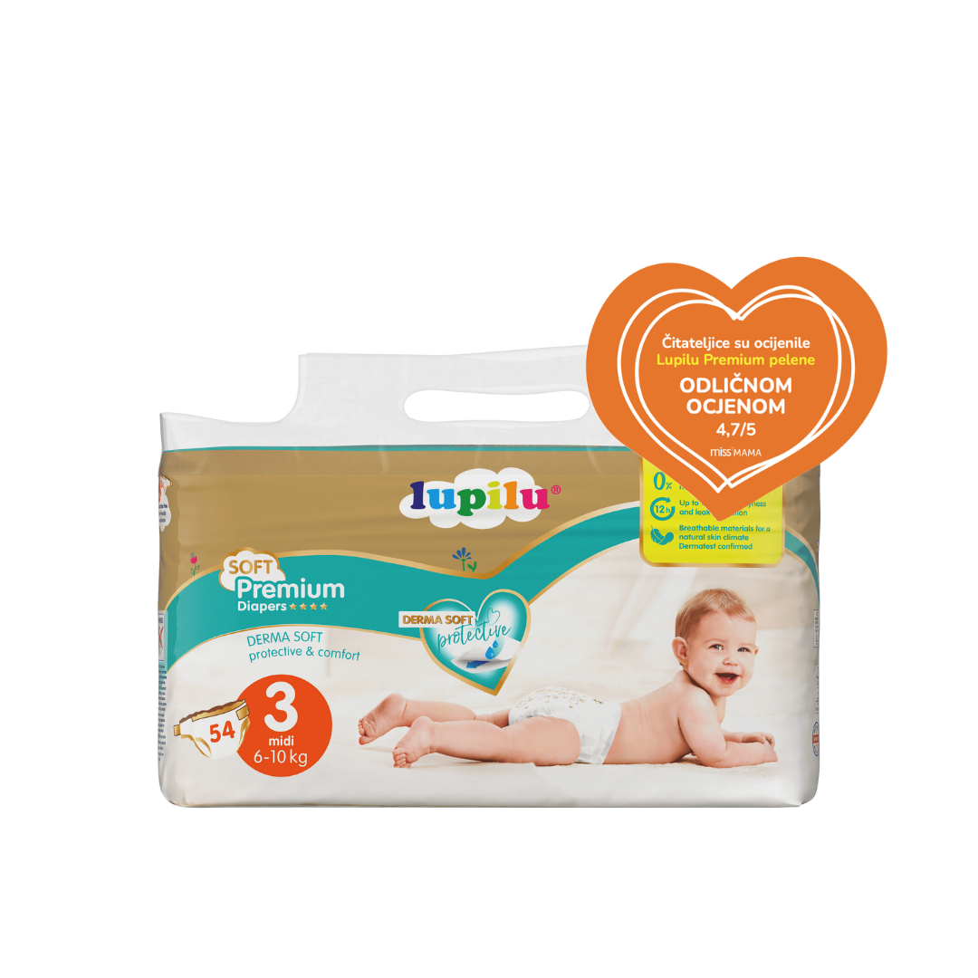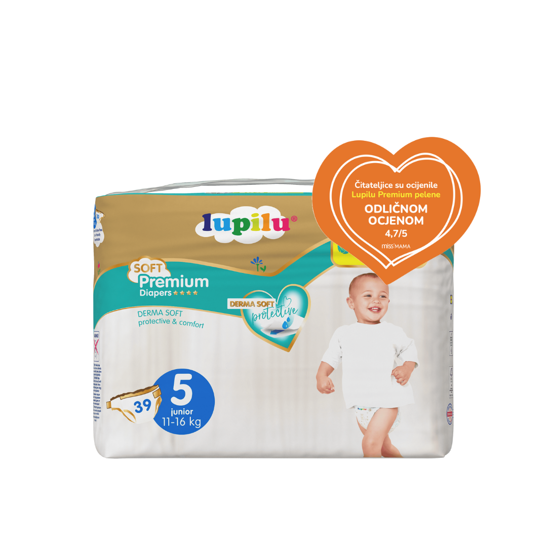 Lupilu Premium pelene pažljivo su osmišljene kako bi pružile vrhunsku njegu i maksimalnu zaštitu. Zahvaljujući jedinstvenoj tehnologiji Magical Tubes, omogućuju do 2x bržu i ravnomjerniju apsorpciju. Uz to, pelene su razvijene uz najviše sigurnosne standarde: dermatološki su testirane, bez štetnih tvari i dodatnih mirisa, kako bi bile potpuno sigurne i nježne prema najosjetljivijoj dječjoj koži. Dizajnirane su s mekim, fleksibilnim pojasom i prozračnim materijalima koji omogućuju koži da diše, dok elastični obrubi nježno prianjaju uz tijelo – bez rizika od propuštanja ili iritacija. Novi vizualni identitet Premium linije, s elegantnim zlatnim detaljima, jasno ističe visoku kvalitetu proizvoda. Pelene dolaze s indikatorom vlažnosti koji mijenja boju kada je vrijeme za zamjenu, kako bi roditelji uvijek znali kada pružiti svježinu i čistoću. Bilo da beba spava, puže ili istražuje svijet, Lupilu Premium pelene prilagođavaju se svakoj fazi razvoja.